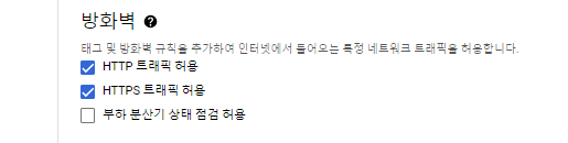 아래로 스크롤하다 "방화벽"에서 HTTP, HTTPS 트래픽을 허용하세요.